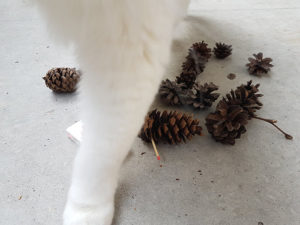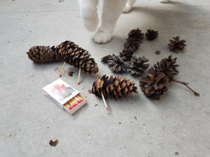 It’s important to pick the pine cones on the ground already, since those are opened by squirrels or whatever and we need the already opened ones. Closed pine cones are not the way to go here.