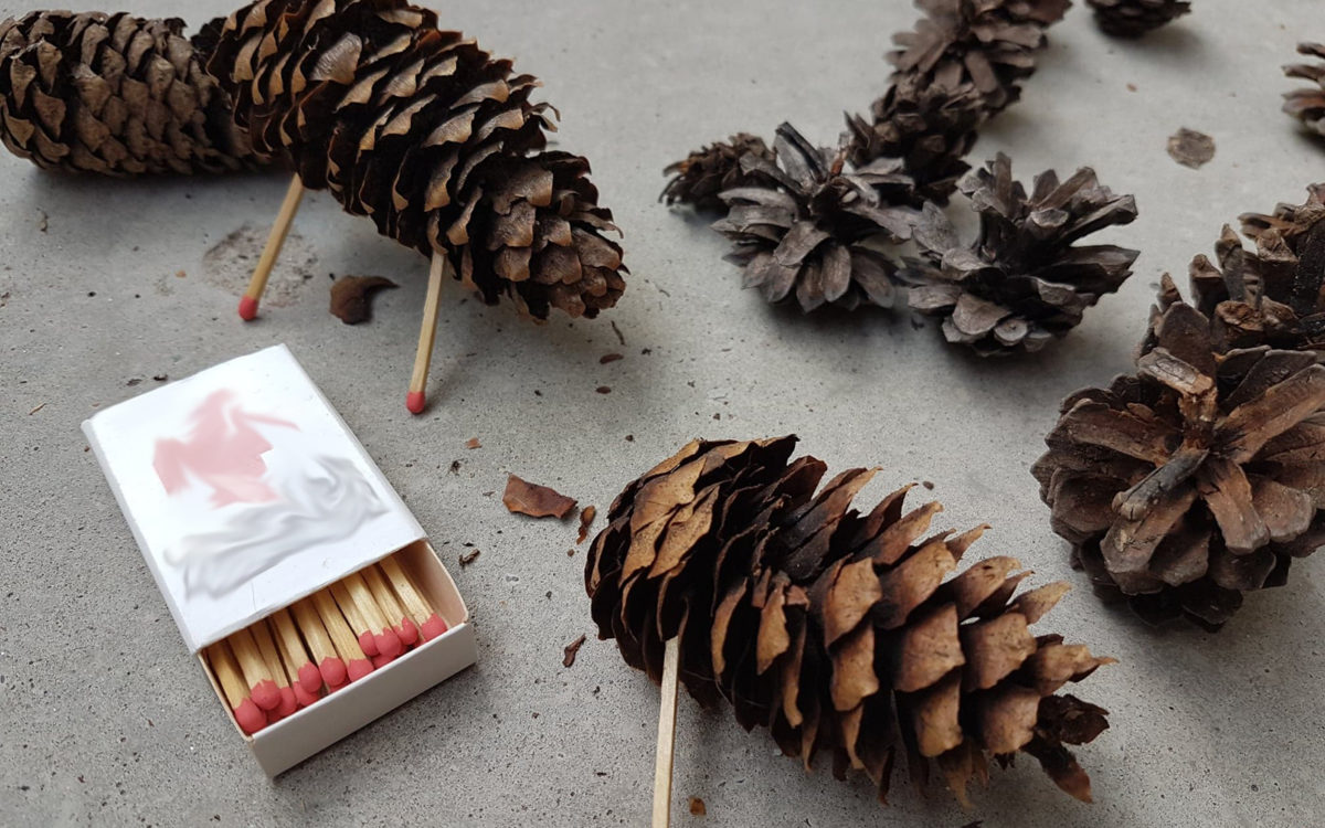 It’s important to pick the pine cones on the ground already, since those are opened by squirrels or whatever and we need the already opened ones. Closed pine cones are not the way to go here.